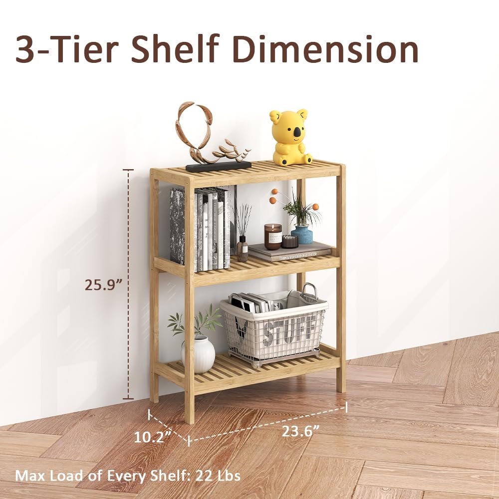 HLXZN 3-Tier Bamboo Freestanding Shelf Unit
