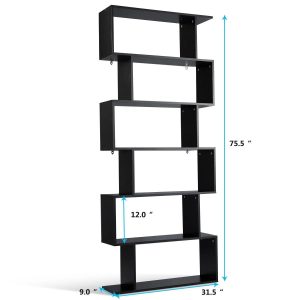 Costway 6 Tier S-Shaped Bookcase Z-Shelf Style