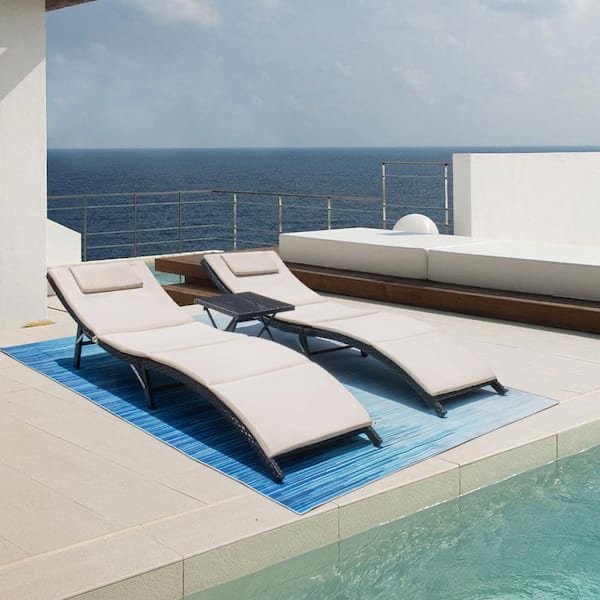 3-Pieces Steel Frame Poolside Folding Chairs Wicker