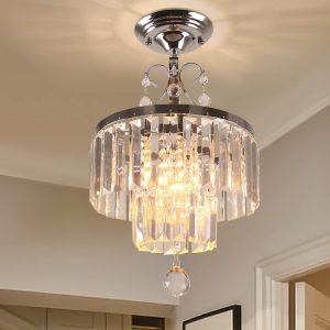 Modern Crystal Chandeliers 2-Tier Flush Mount Ceiling Light Hanging