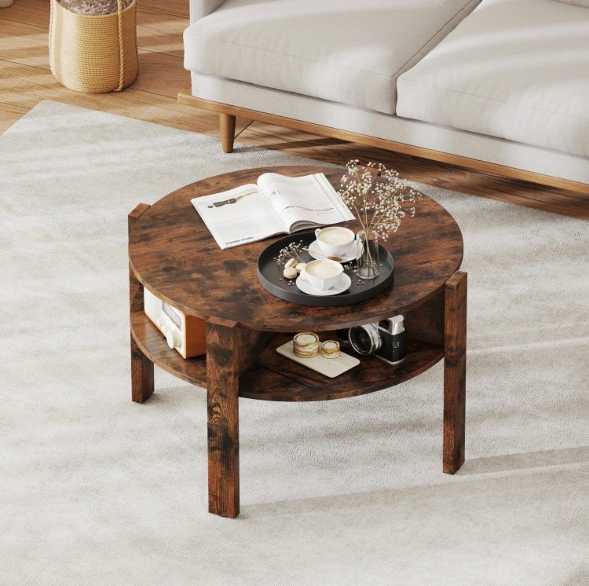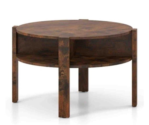 Round Coffee Table with Storage Shelves for Small Space