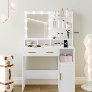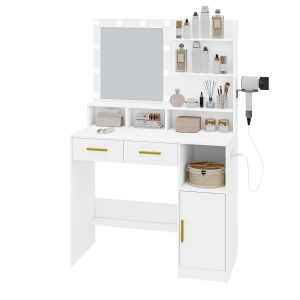 Hzuaneri Vanity Desk with Mirror and 10 LED Lights