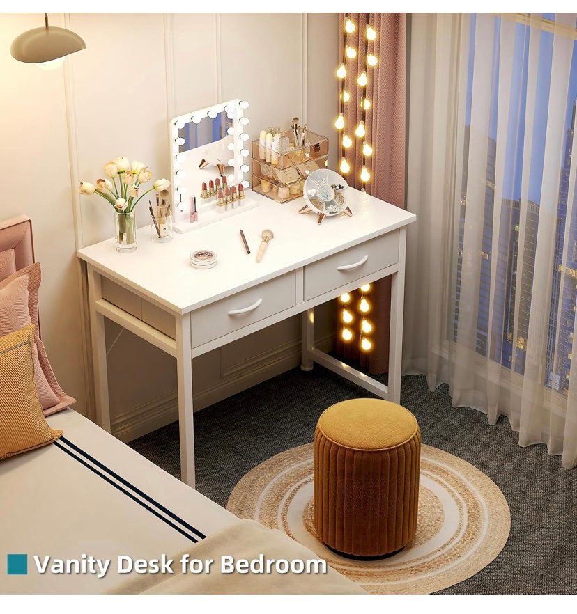 CAIYUN Small White Desk with Fabric Drawers for Bedroom,