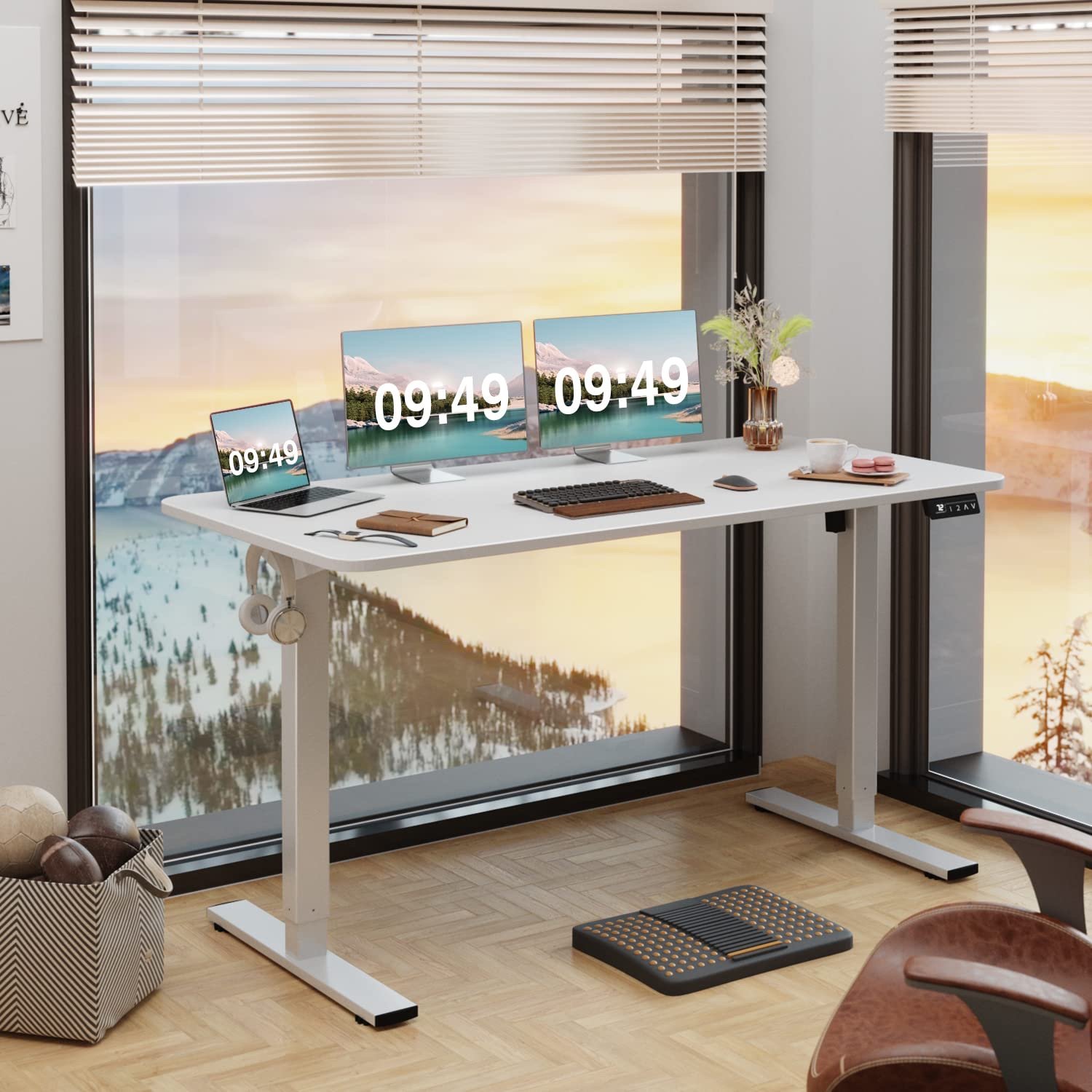 Furmax Electric Height Adjustable Standing Desk Large Color White