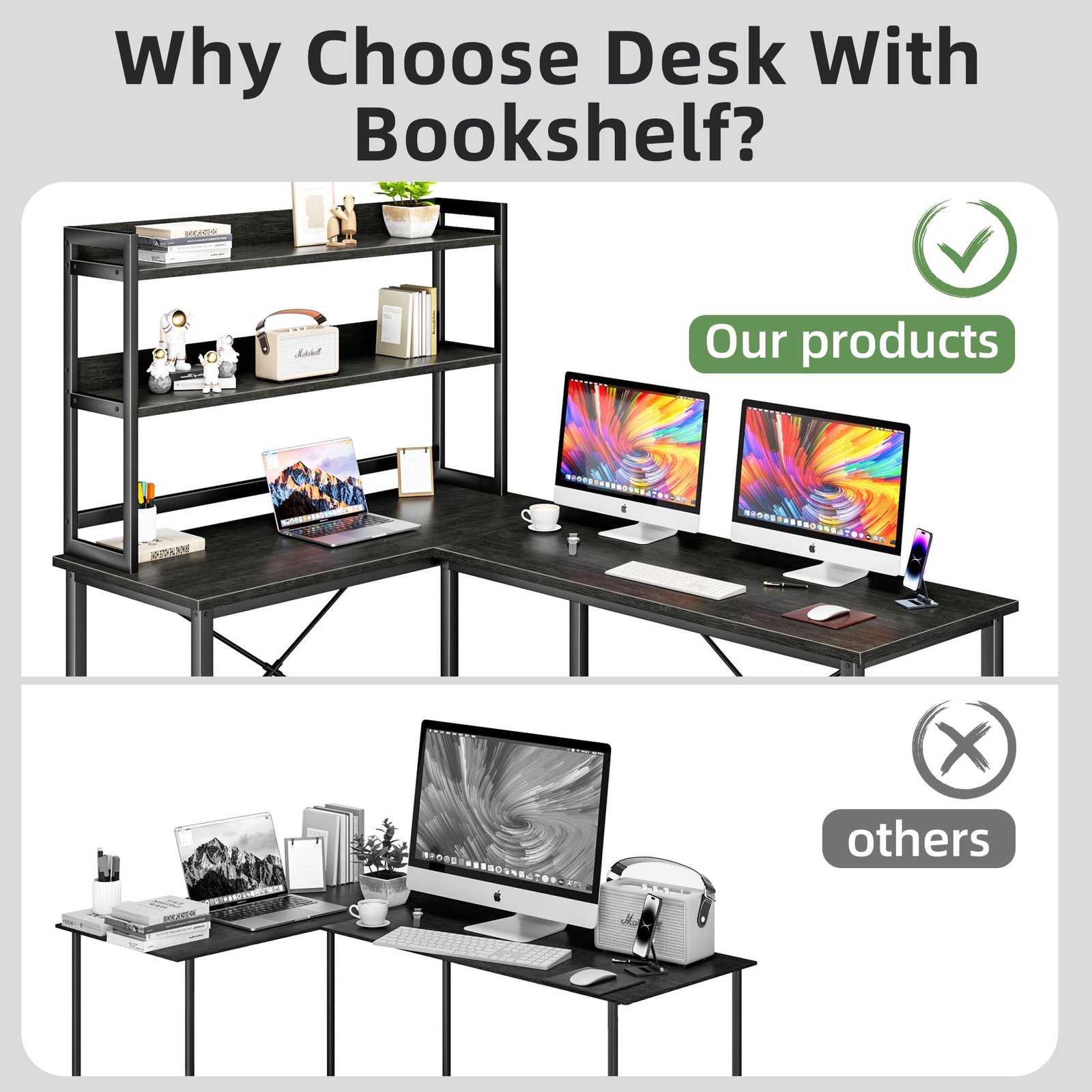 New GYIIYUO L Shaped Desk with Hutch 61 Inch