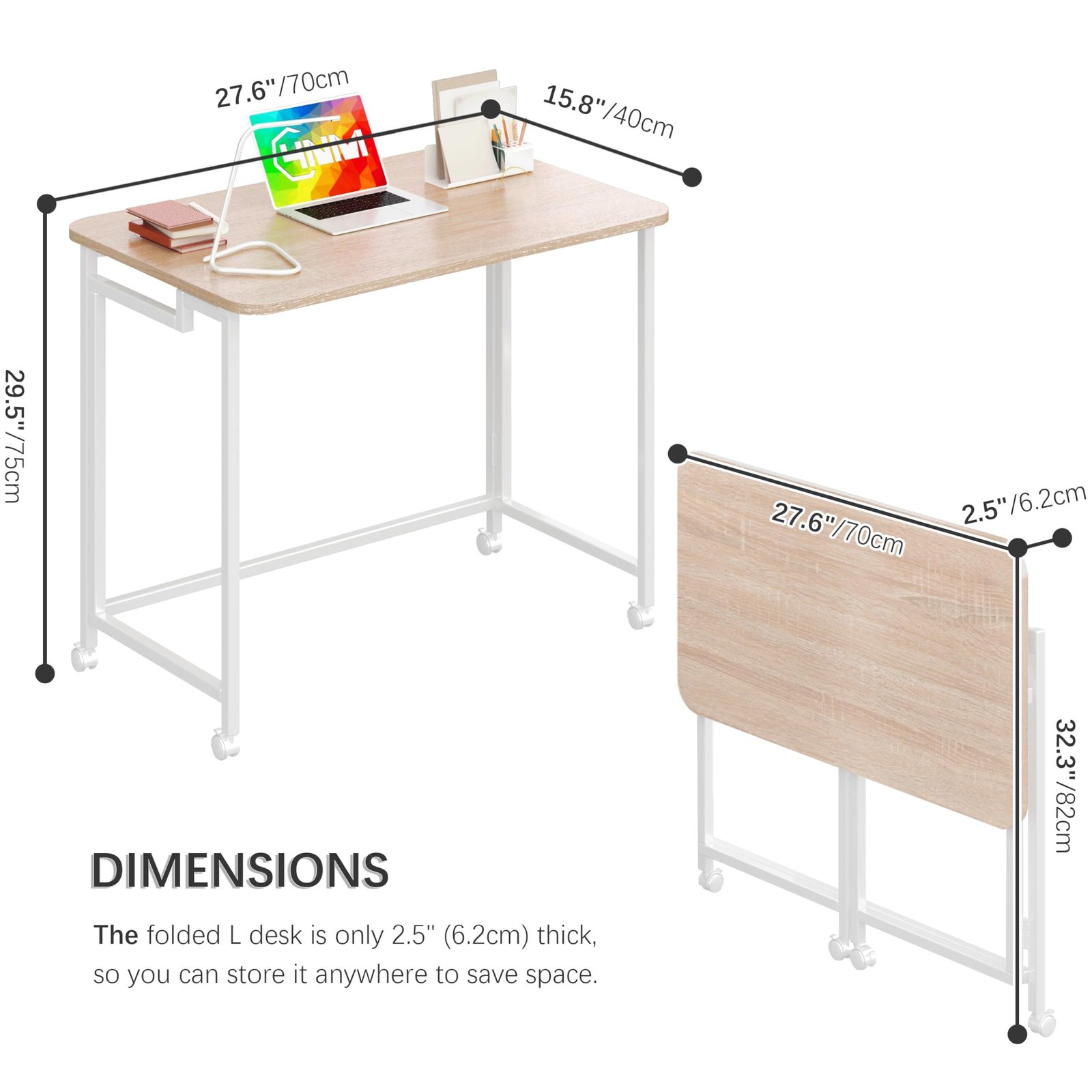 GreenForest Folding Desk Small Rolling Desk with Storage
