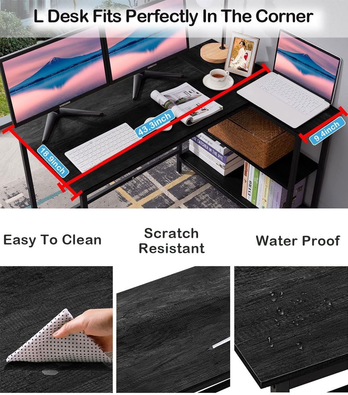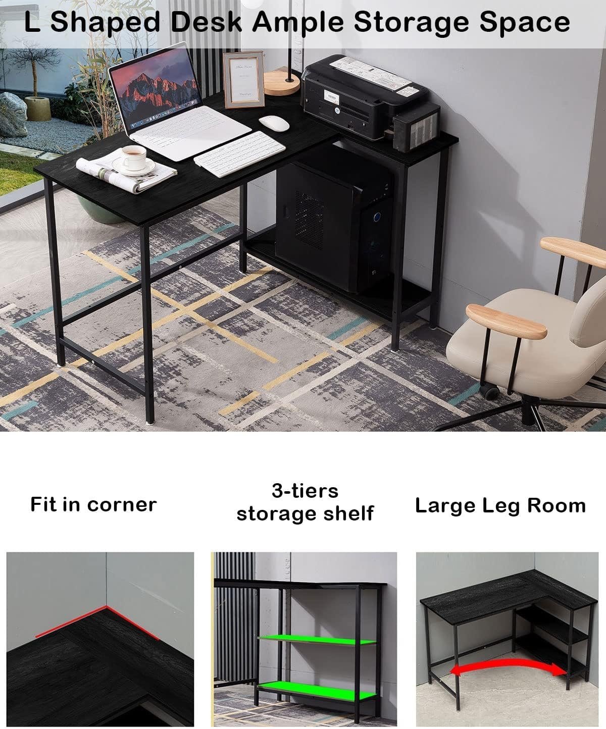 WOODYNLUX L Shaped Computer Desk – Home Office Desk with Shelf