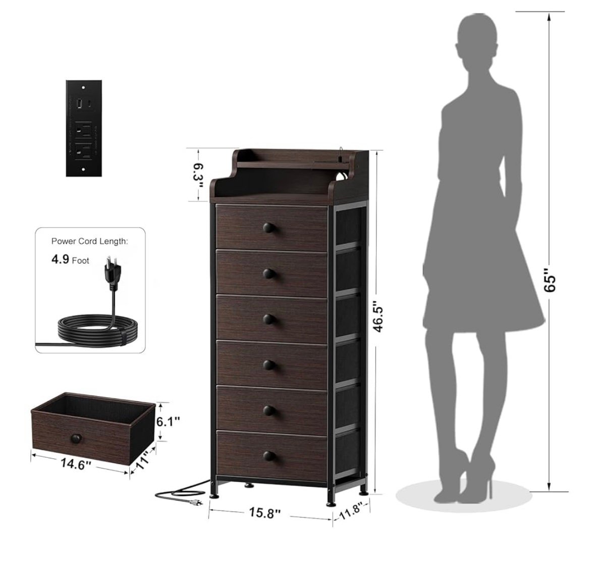 Tall Dresser for Bedroom – Fabric Dresser- 4 Storage Drawers
