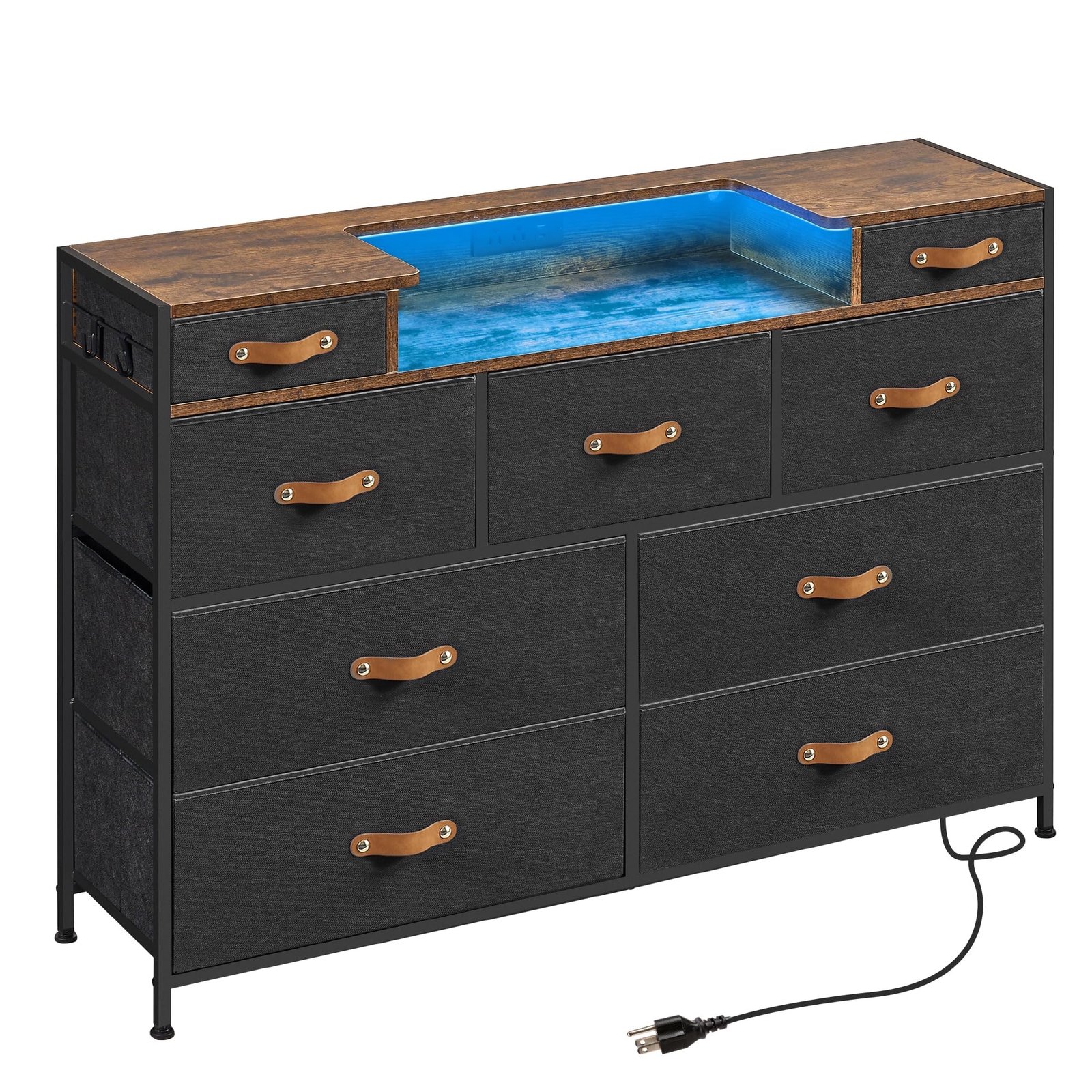 Black Dresser with LED Light and Charging Station