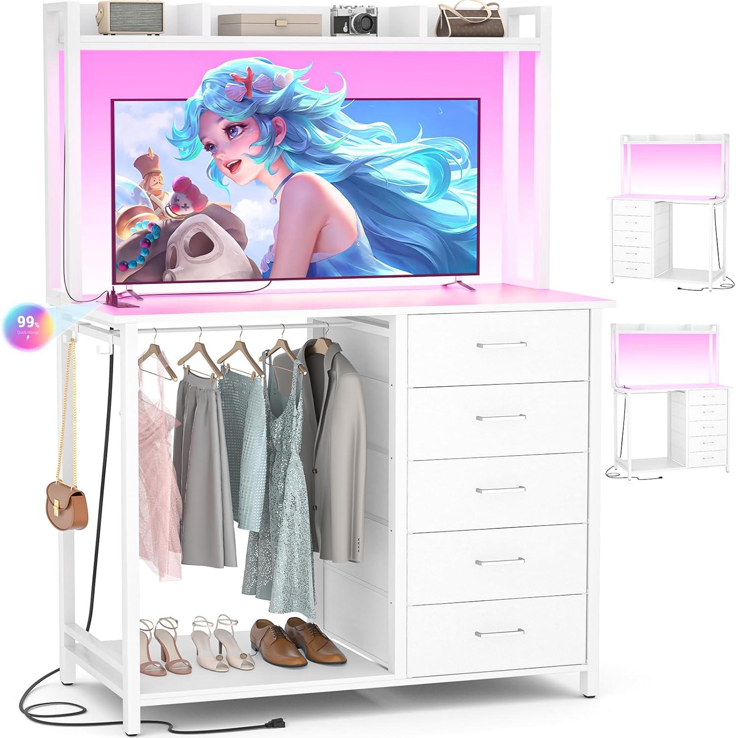 REAHOME Dresser for Bedroom with Charging Station and LED Lights