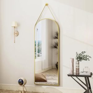 HARRITPURE Arched Mirror w/ Hanging Leather Strap 16″ x 48″