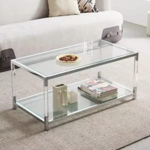 202205 BLEVIO Coffee Table, Dual-Layer Glass Coffee Table