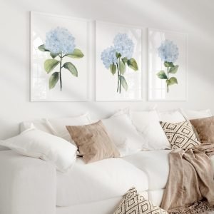 Hydrangea Floral Wall Art Print On Canvas, Set of 3