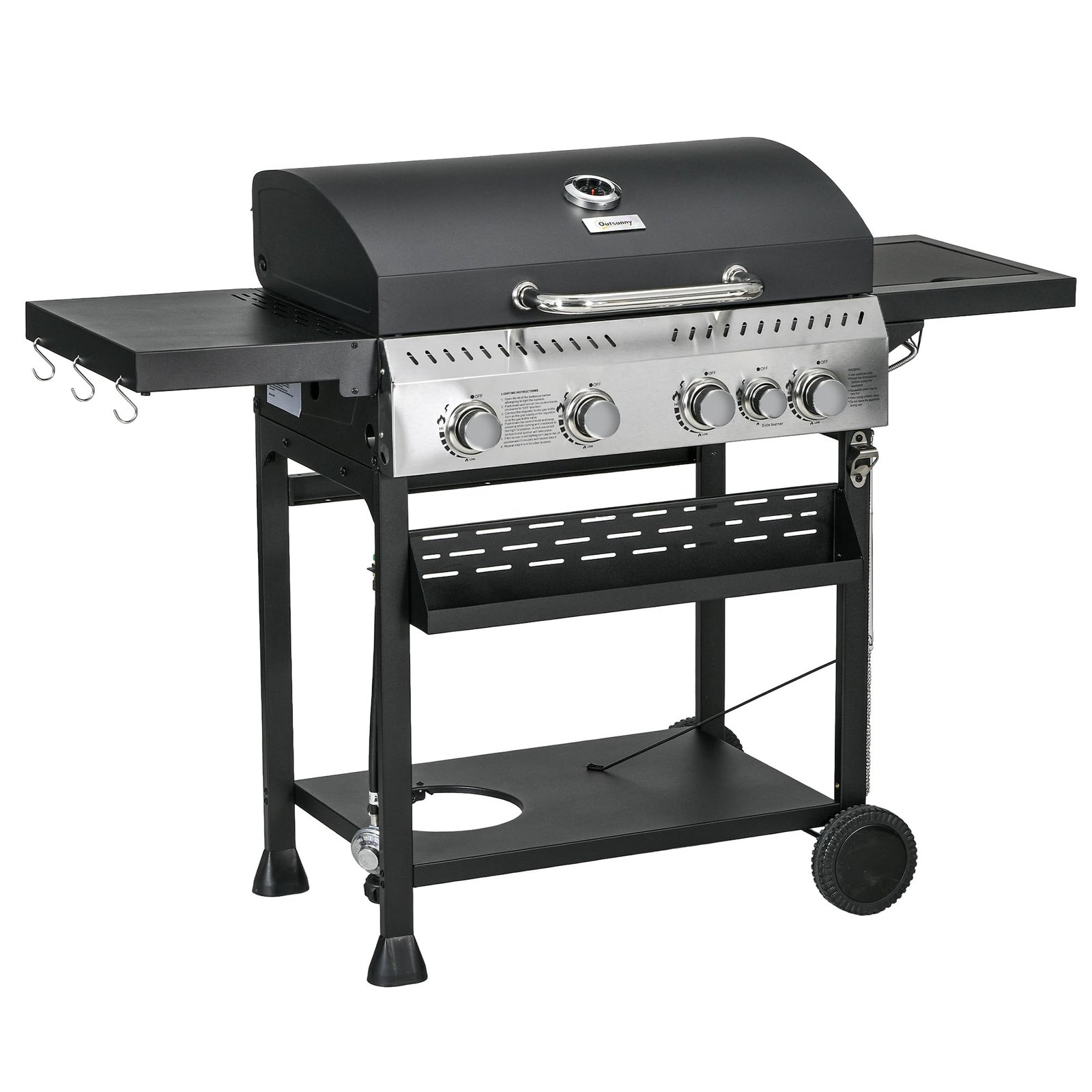 Outsunny Propane Gas Grill with 4 Main Burners, 1 Side Burner