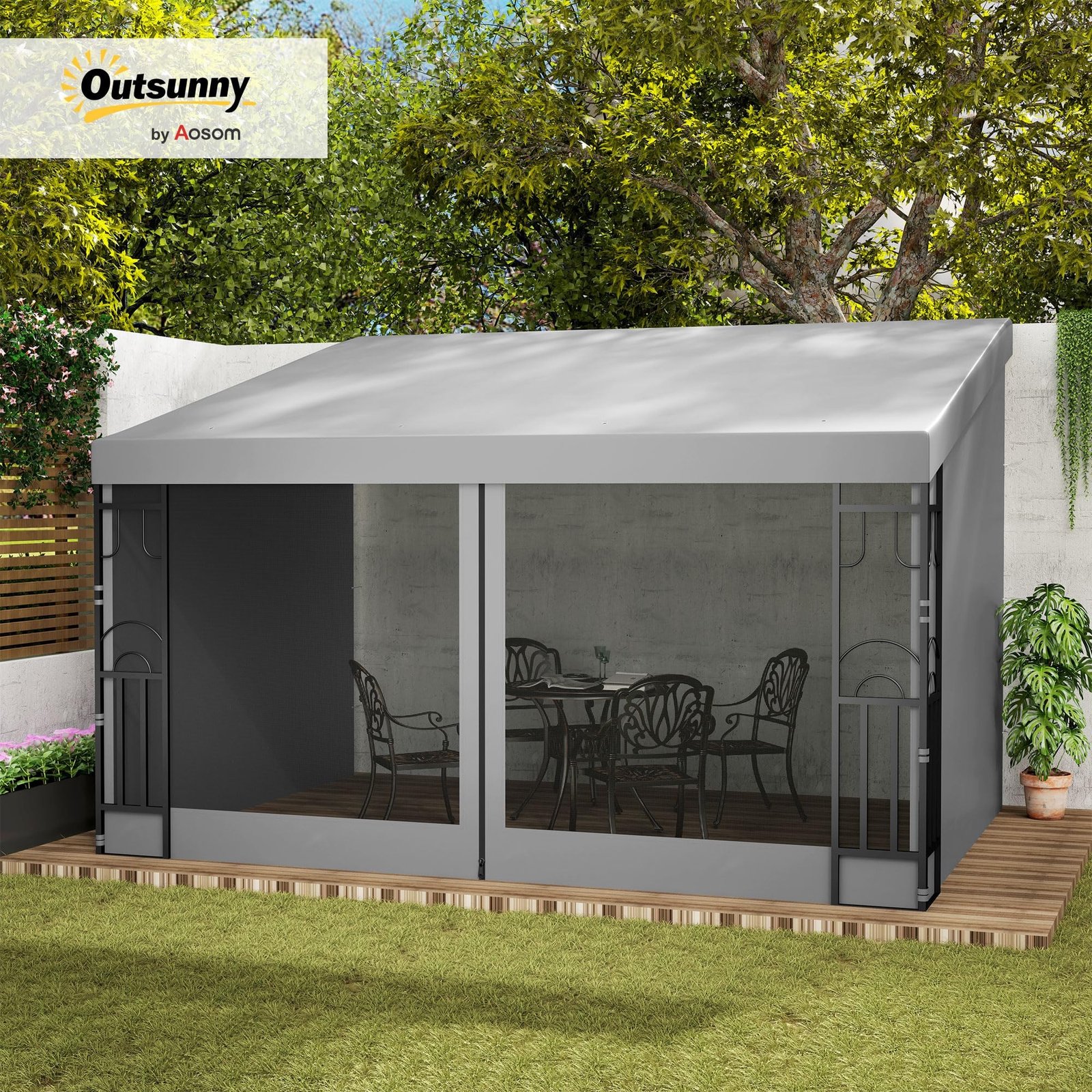 Outsunny Lean to Outdoor Pergola Canopy with 2 Curtains and 2 Nettings
