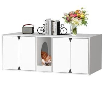 Homsee Modern White Four Door Cat Cabinet