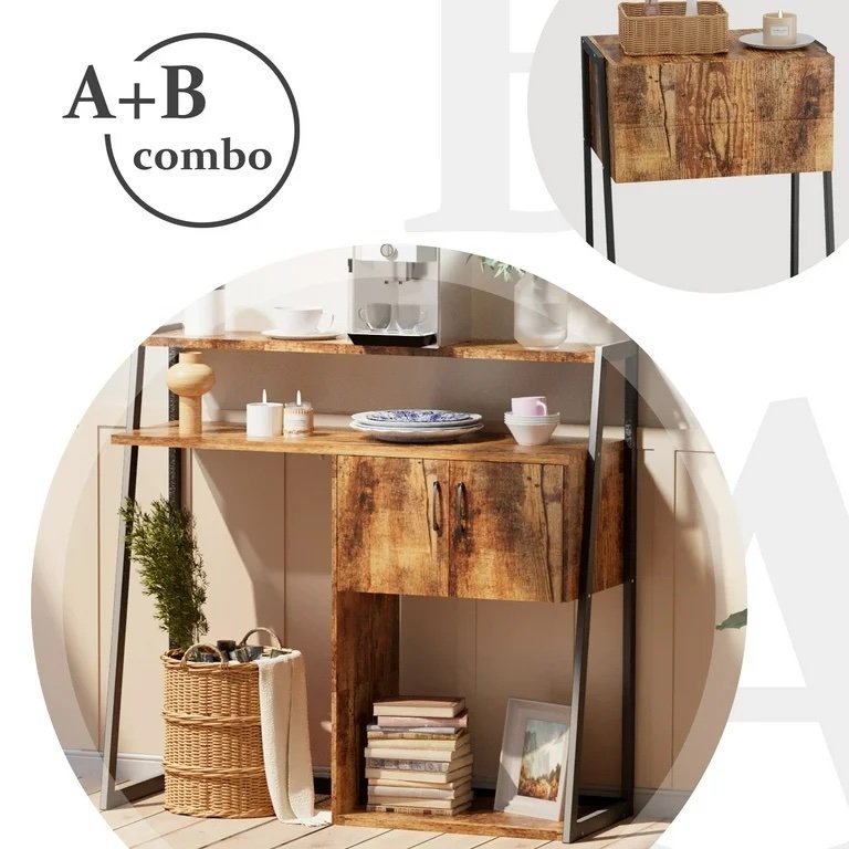 Eclife Rustic Wood Buffet Cabinet With Multi-Storage