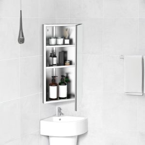 HOMCOM Wall Mounted Bathroom Corner Mirror Storage Cabinet