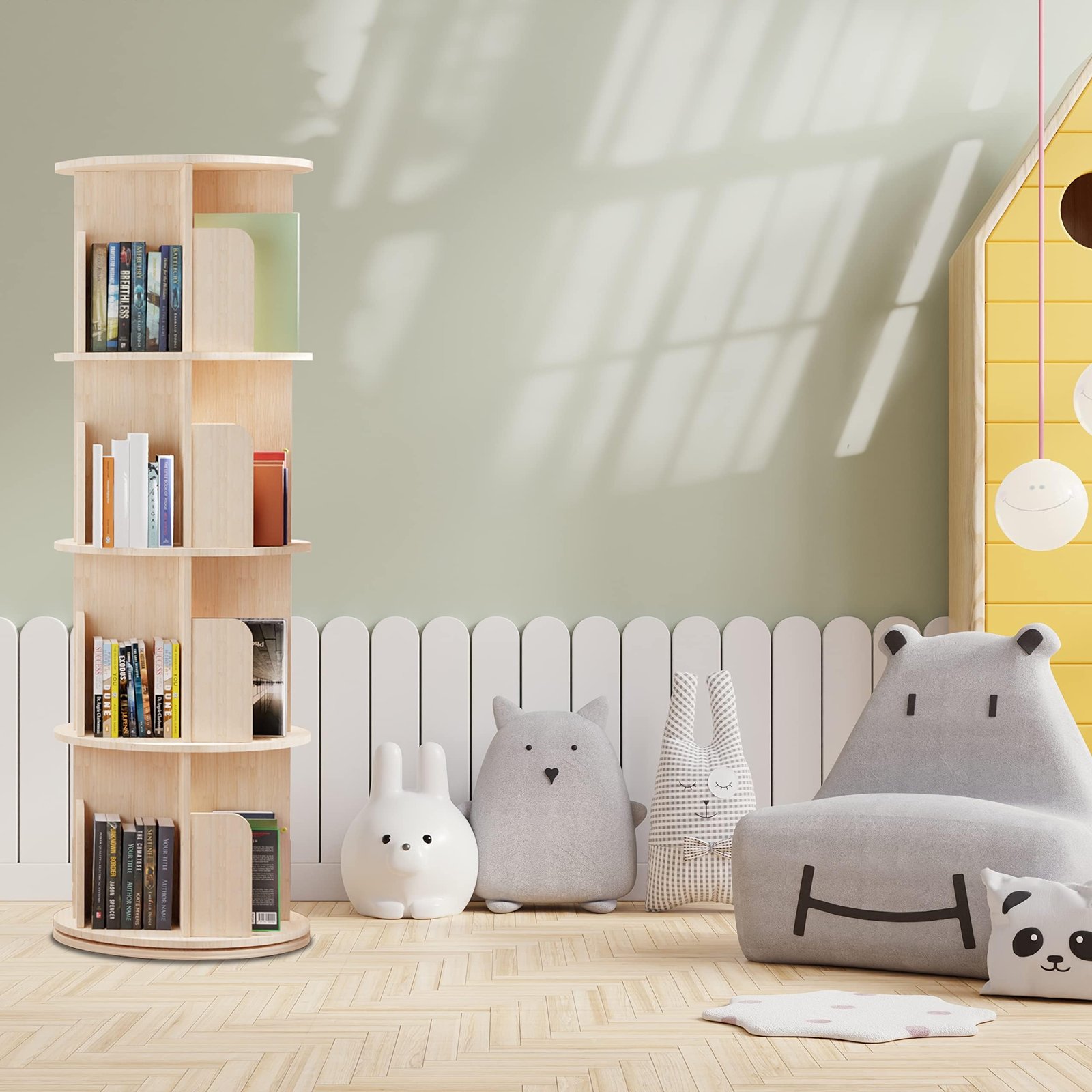 Cuguords 360 Display Rotating Bookshelf Tower, Spinning Bookshelf, 4 Tier