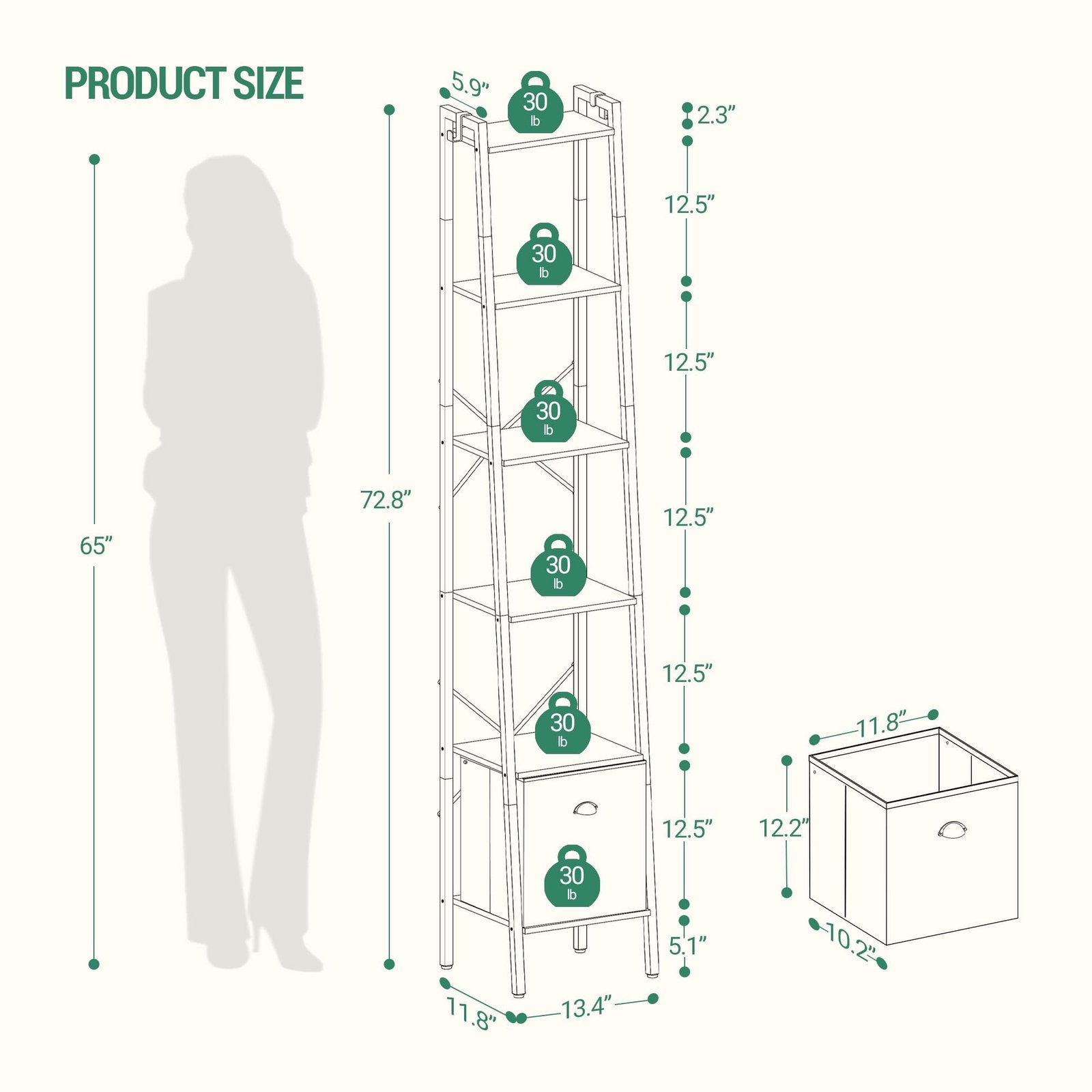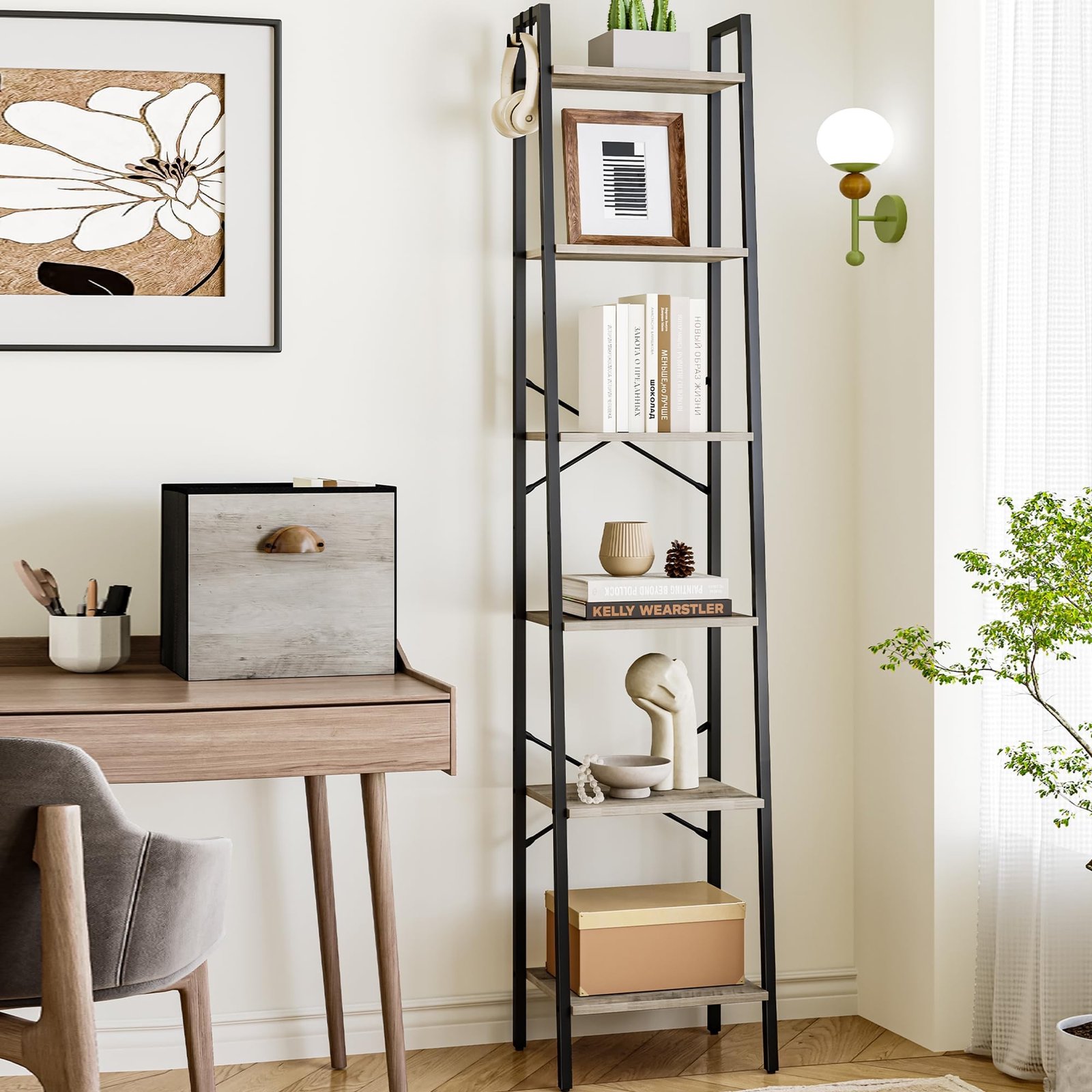 Hzuaneri Narrow Bookshelf Bookcase with Drawer, Ladder Shelf
