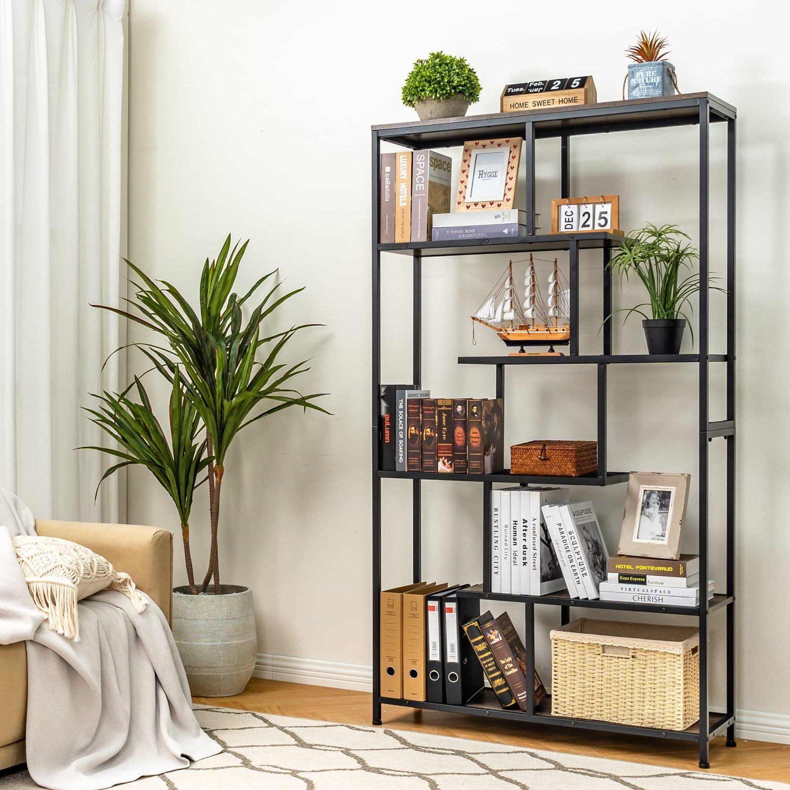 Tektalk Bookshelf, Rustic 6 Open Shelves Bookcase