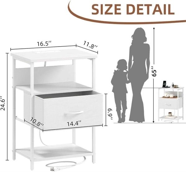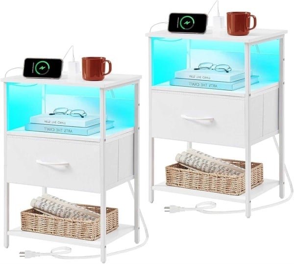 Somdot White Nightstand Set of 2 with Charging Station and LED Light