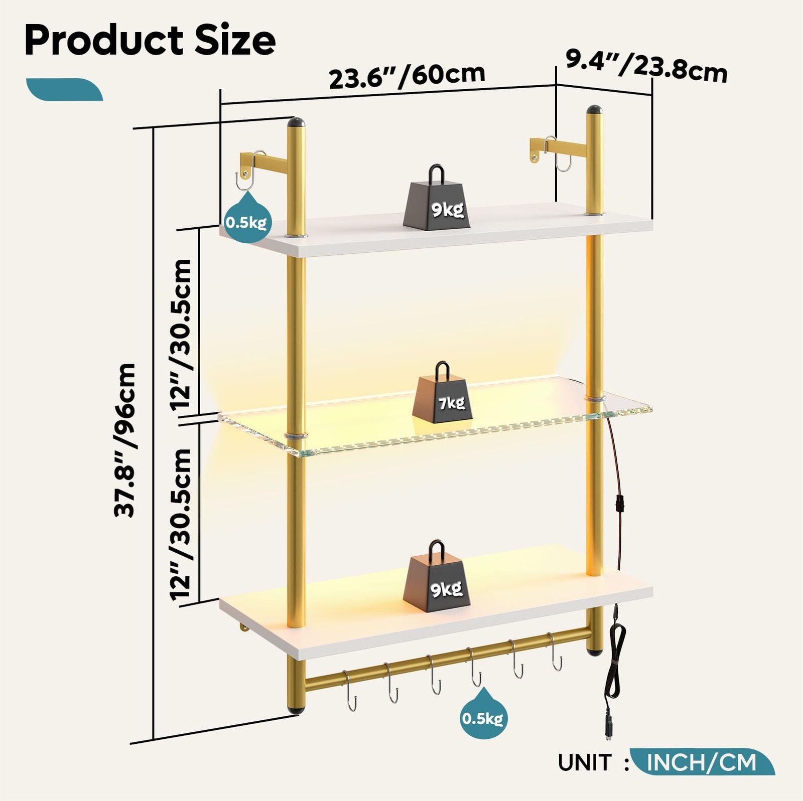 Bestier Floating Shelves with LED Lights for Wall Decor Storage