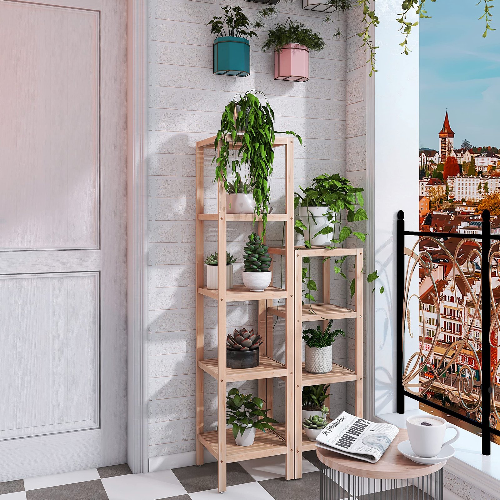 SMIBUY Bathroom Storage Shelf, 5-Tier Bamboo Rack Organizer