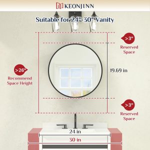 Keonjinne 20 Inch Round Medicine Cabinet with Mirror, Black