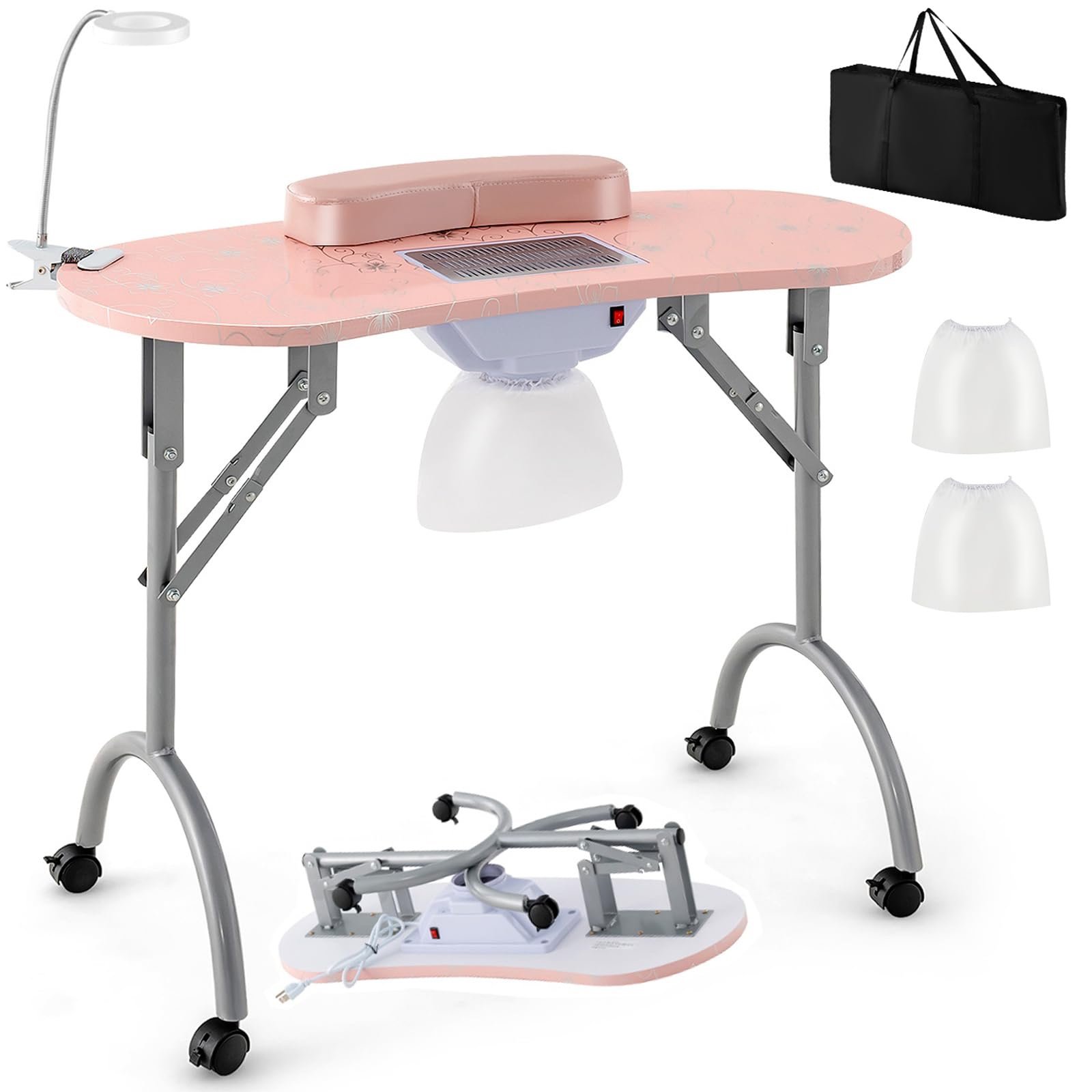 Giantex Manicure Nail Table for Nail Tech, Portable Electric Dust Collector