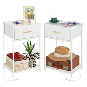 HOOBRO Tall Side Table with Adjustable Mesh Shelf(Pack of 2)