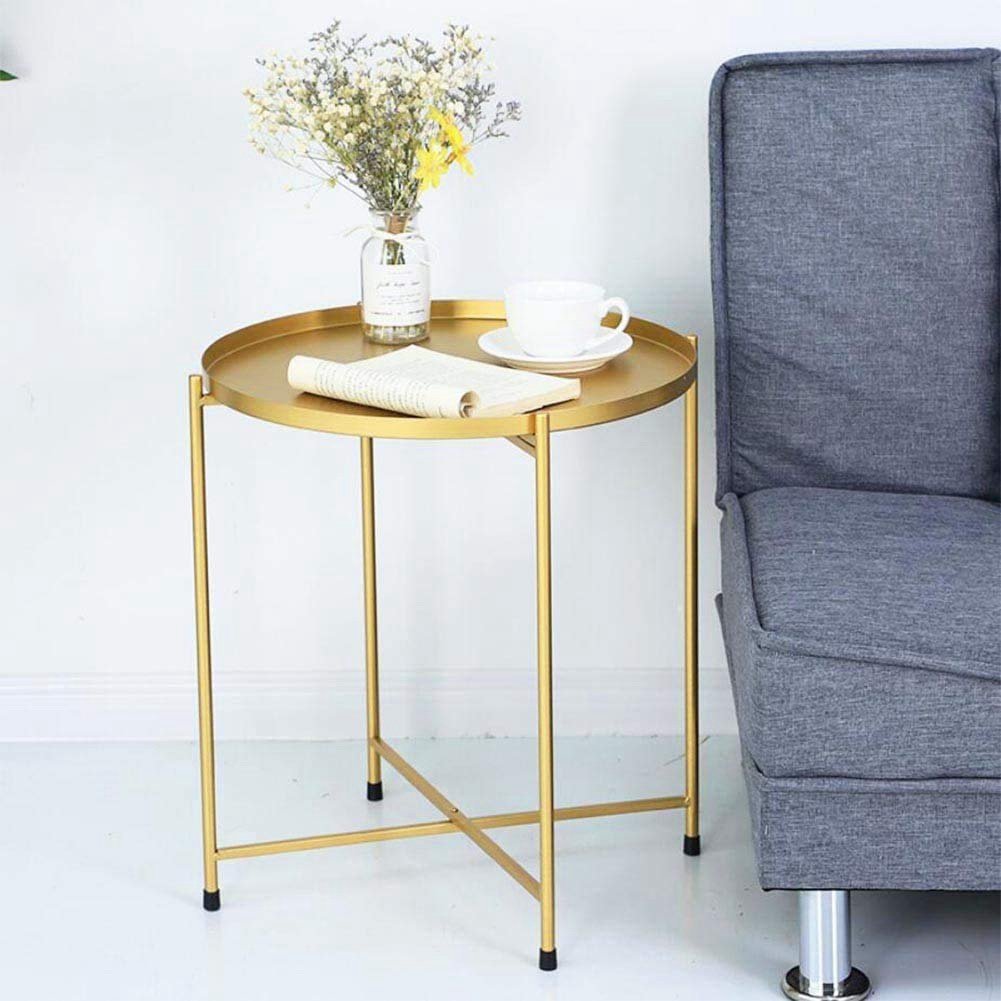 VECELO Folding TV Tray, Portable Dinner/Snack Table with Cup Holder, Set of 2, Gold