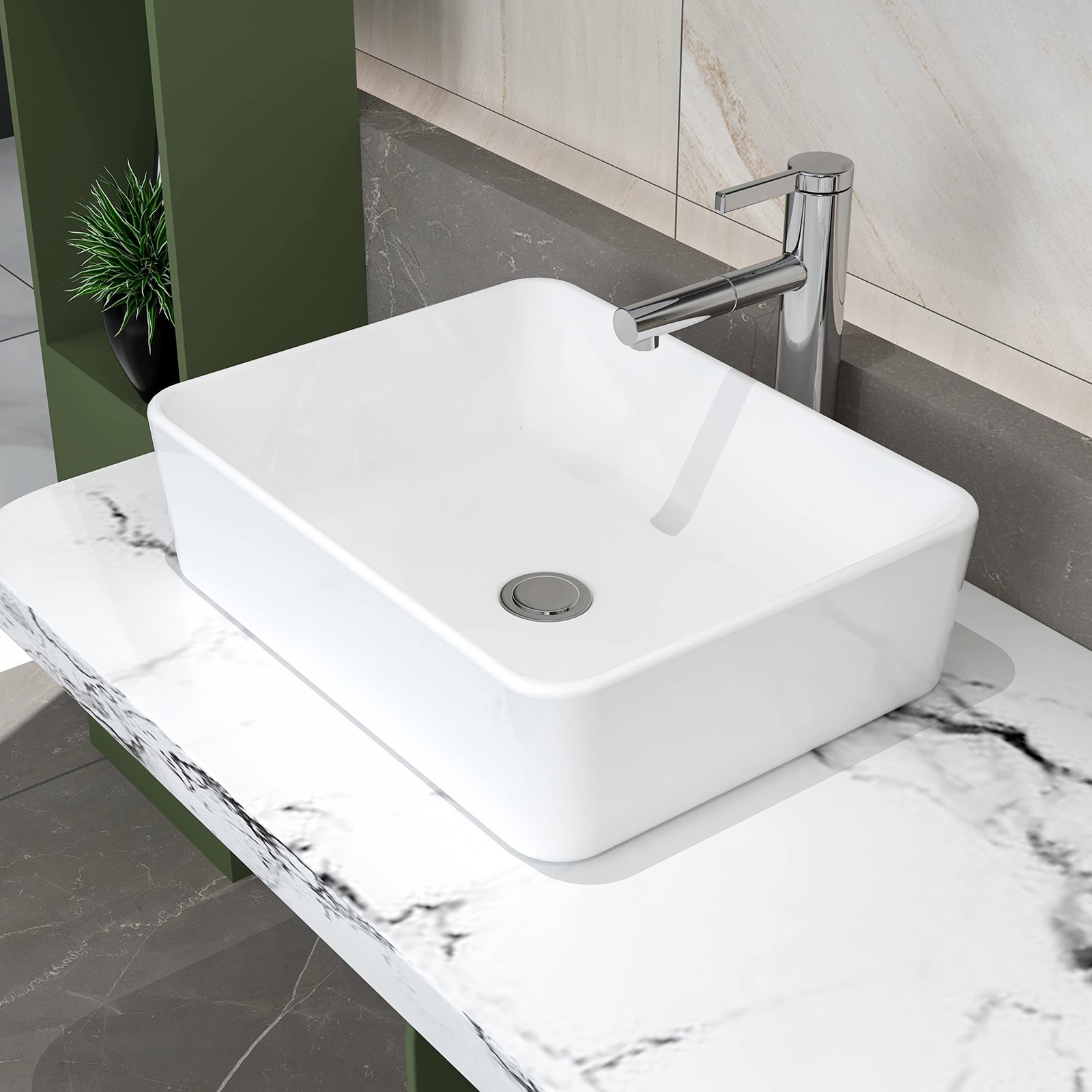 MEJE Rectangle Vessel Sink 19″ White Bathroom Sink