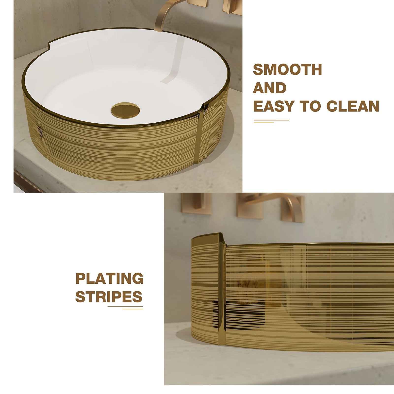 MEJE Luxury Gold Stripes Round Art Basin, Above Counter Vessel Sinking