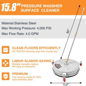 Zebby 15.8″ Stainless Steel Pressure Washer Surface Cleaner