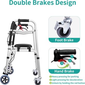 Walkers for Seniors,Folding Walker with Lockable Wheels, Det