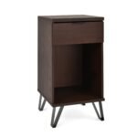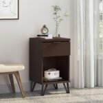 Keep your bedtime necessities at hand while giving your interior space a modern industrial aesthetic. Featuring a smooth wood like finish and a minimalistic structure, our exceptional nightstand brings a contemporary sophistication to any bedroom with its sleek look. This nightstand is completed with one drawer and one shelf for plenty of storage space, giving you ample room and style to organize your items.