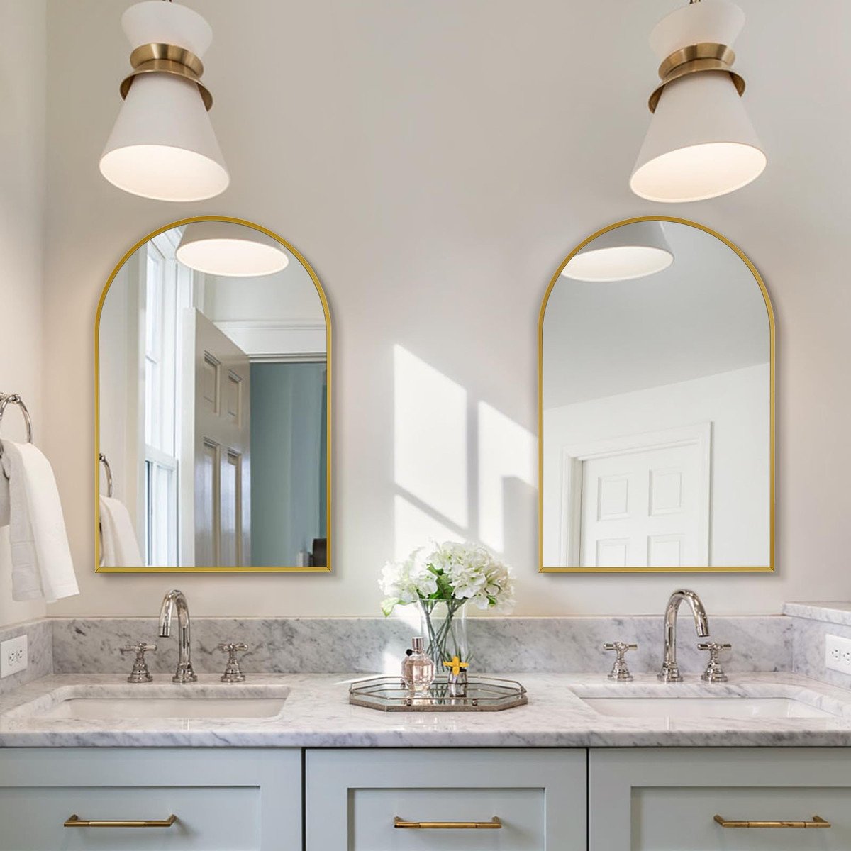 Arched Shapes: Minuover’s arched-top bathroom mirror will bring a classic look, and good decorative mirrors can add visual impact to vertical spaces, perfect for making your space feel brighter and more open.
