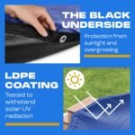 PROTECTION FROM SUNLIGHT AND OVERGROWING. When choosing a pool closing kit for above-ground pools, remember that winter sun is deceiving. UV radiation from it doesn’t drop during colder months as much as temperature does, so any materials left outside are at risk of damage. That’s why the cover in our pool closing kit has LDPE coating on it that’s been tested to withstand solar UV radiation. Also, the BLACK UNDERSIDE of the round pool cover won’t let the water overgrow.