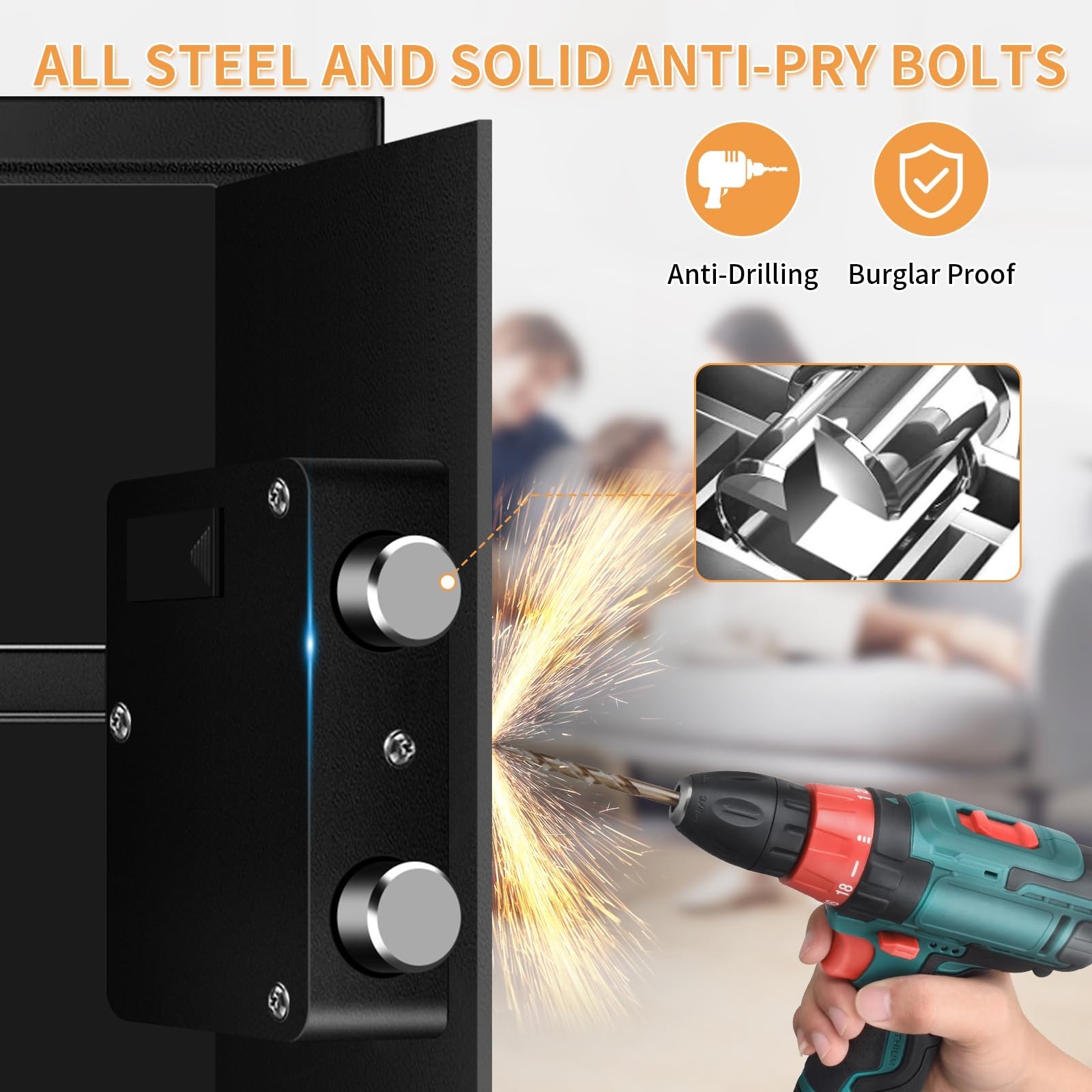 STEEL CONSTRUCTION & HOME SECURITY: This home safe is made of solid steel construction with coating. Three live steel lock bolts and thick pry-resistant concealed hinges & recessed door provide physical protection against forced entry. Keep burglars and angry teen from getting your possessions and protecting your privacy