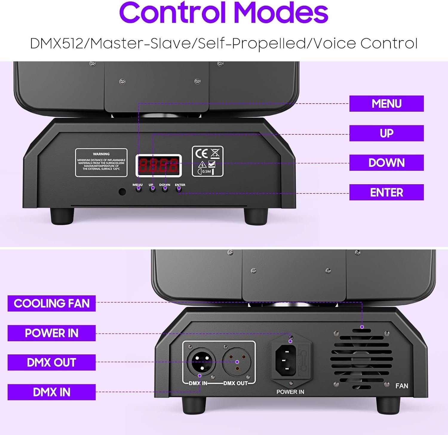 🎅【 Easy Setup and Operation】The dmx lights Equipped with a 4-digit digital display, these moving head offer straightforward configuration and monitoring. The standard DMX512 protocol and three-core XLR input/output ensure seamless data connection and compatibility with a variety of professional lighting setups. Whether you’re a seasoned professional or just starting out, these lights are user-friendly and intuitive to operate.