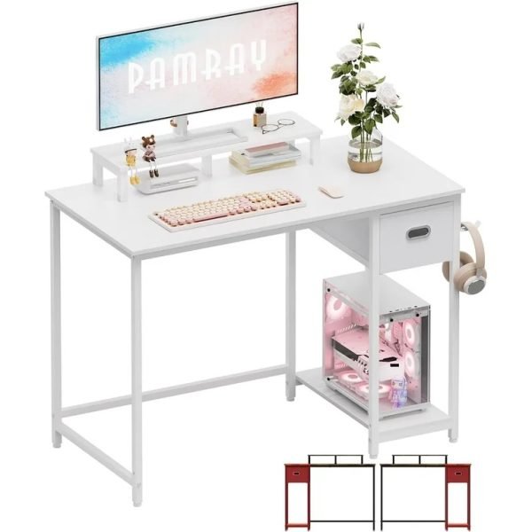 Ample storage space – Storage capacity: 1 non-woven drawer (0.59 cubic feet), 1 computer case stand (1.83 cubic feet), 2 hanging hooks (for storing your backpack and headphones).