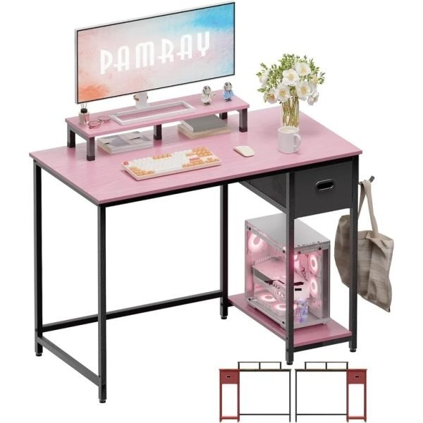 Computer Desk with Monitor Stand — This computer desk with a monitor stand allows you to adjust the height of your monitor, enhancing visibility and work comfort. It can boost your work efficiency and help maintain correct posture while working.