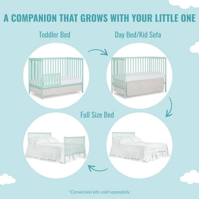 5-in-1 Convertible Crib in Mint, Greenguard Gold Certified