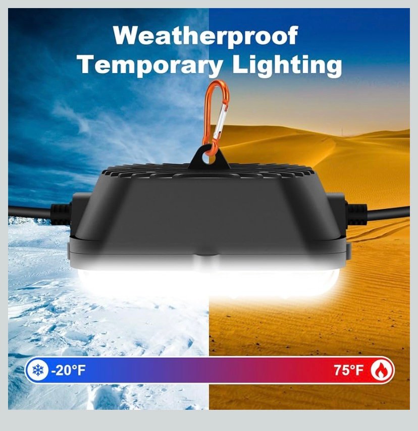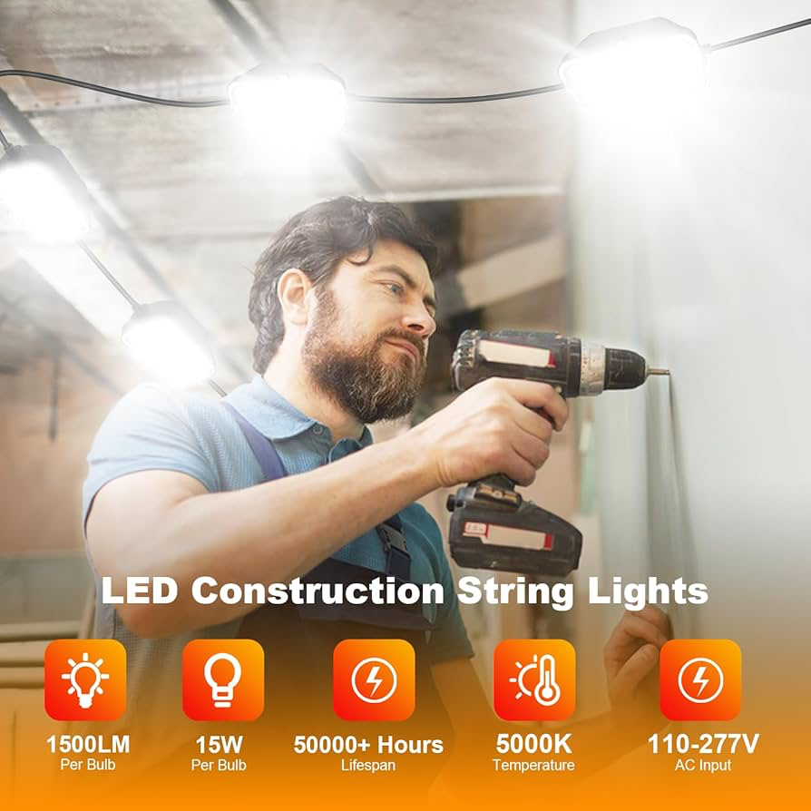 【Super brightness】The work string lights 50 ft including 5 LED work lights 75 W 7500 lumens 5000K daylight makes the construction string lights illuminate larger areas and more light
