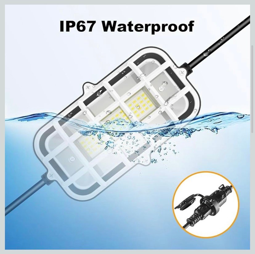 【Durable Construction】Waterproof IP65 AC plug with waterproof cover for safer construction, IK07 protection can withstand shock, vibration and rough handling without damaging the construction string light