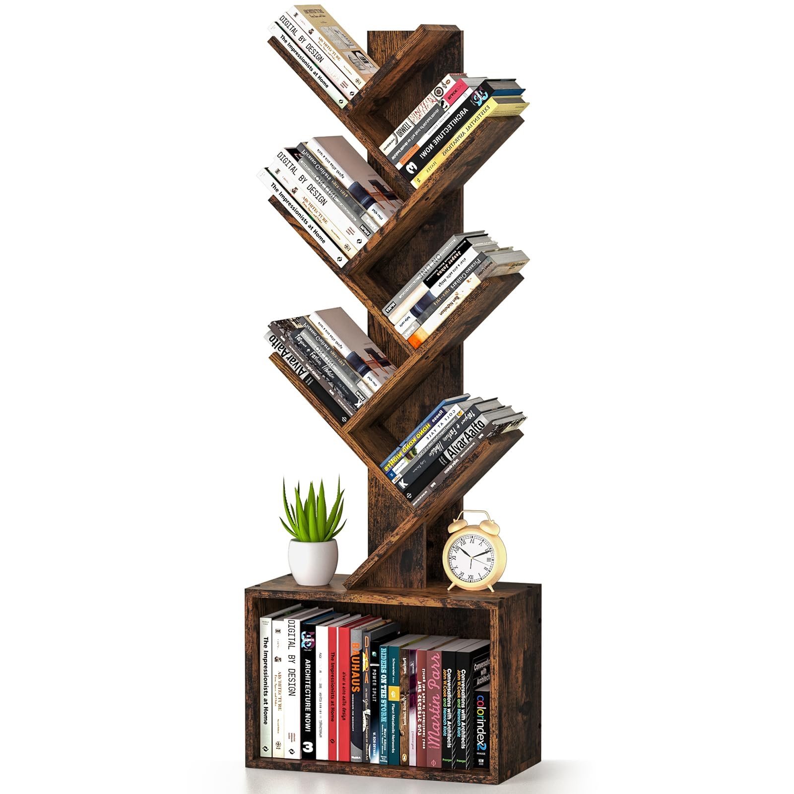 6 Tier Tree Bookshelf, Sturdy Retro Floor Standing Wood
