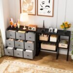 Large Capacity: 9 storage drawers in 2 color choices selected. These drawers are spacious enough to provide various possibilities. The wooden top of the dresser organizer and open shelves are great for lamps, books toys, etc, keeping them within reach