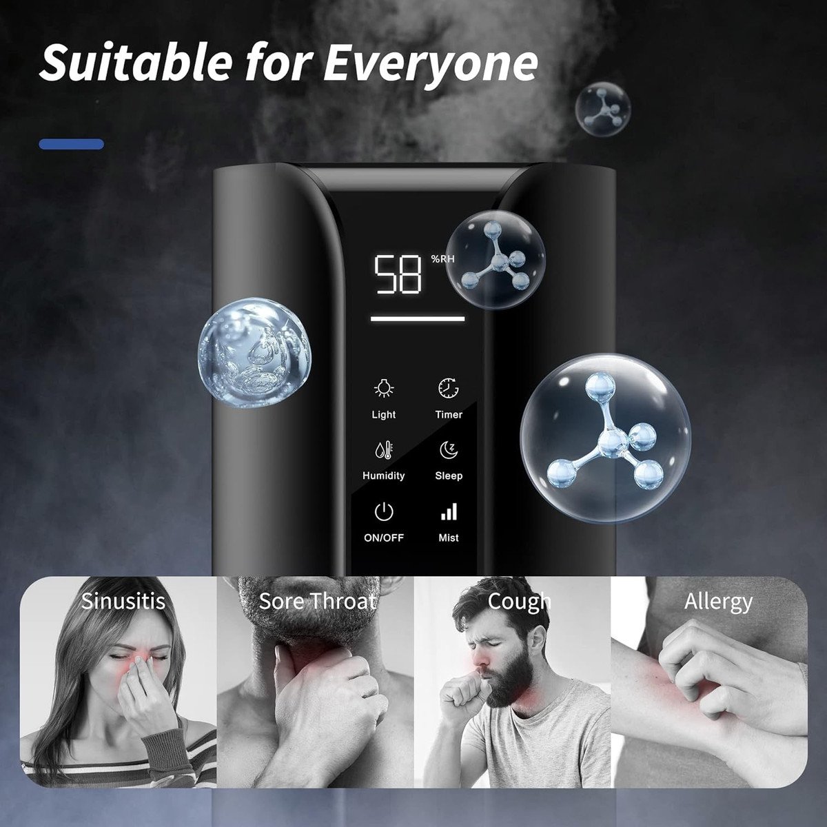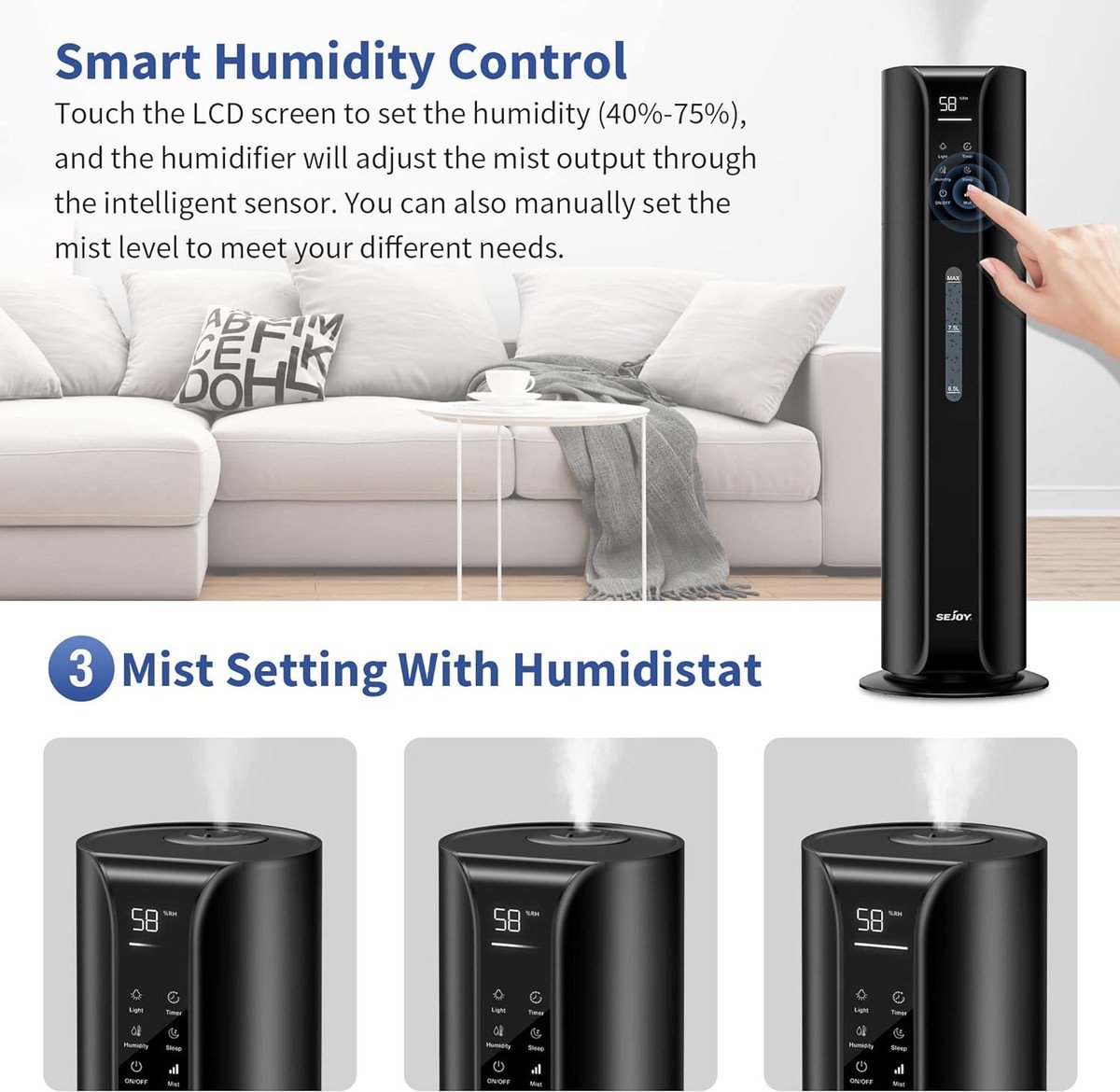 ?9L Humidifiers for Large Room?Sejoy humidifier is designed for large rooms up to 500 ft?, with a large 9L capacity tank that can run for at least 36 hours after filling with water. Designed with a 360? rotating nozzle for complete control of the mist flow direction. The perfect humidifier for bedrooms, large rooms, babies and plants!