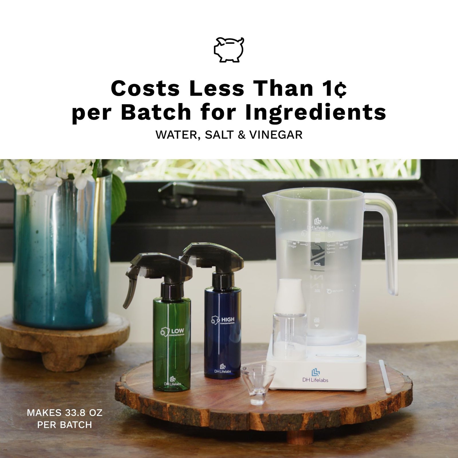 NO HARSH CHEMICALS | Creates HOCl disinfectant from non-iodized salt, water, and vinegar. No ammonia or bleach.